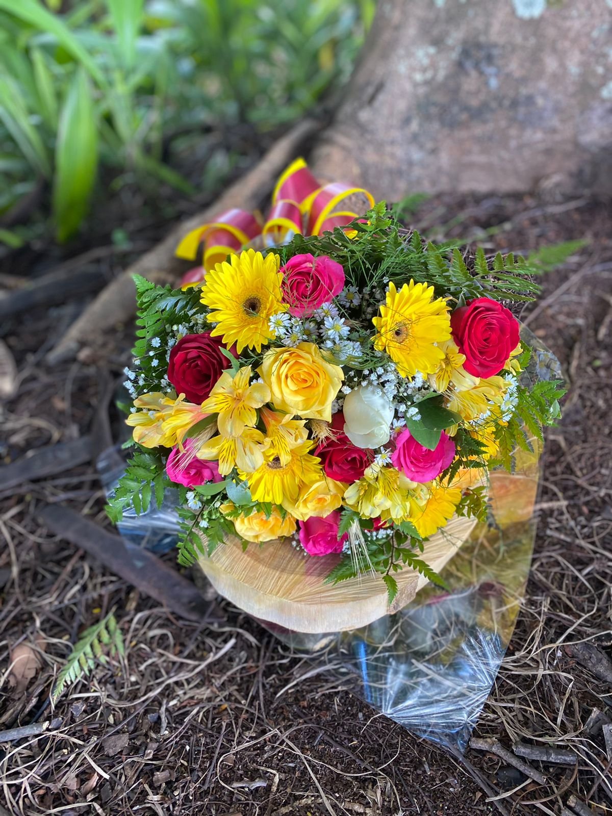 Buquê de 18 mix de flores sendo: rosas, gérberas, folhagens, gipsofila, alstromérias e embalagem exclusiva com laço na cor das flores, cor do buquê de acordo com disponibilidade
