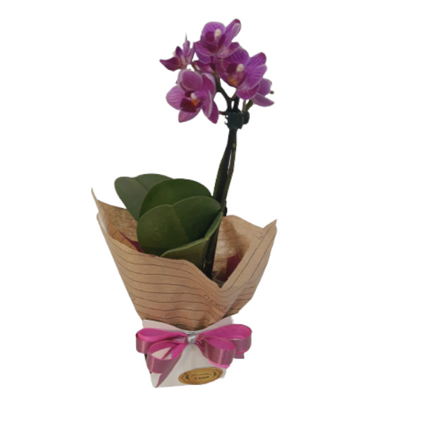 Delicado e vaso em miniatura 0,30 de altura de orquídea cor: tons variados (de acordo com disponibilidade) enfeitada na caixinha papel e laço da cor das flores, acompanha caixa de bombons ao leite 55 g