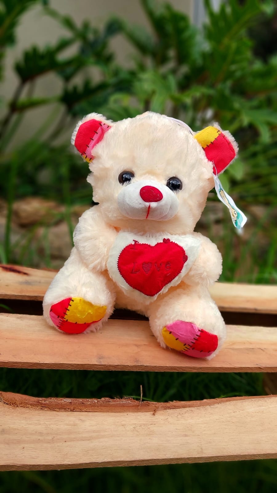 Urso de pelúcia P com coração lovezinho, cores: diversas, med: 20 cm em embalagem exclusiva de presente