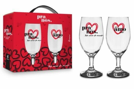 Maleta presente com 2 taças de vinho- PRA NÓS AMOR DO MUNDO capacidade 385 ml cada, em embalagem exclusiva para presente
